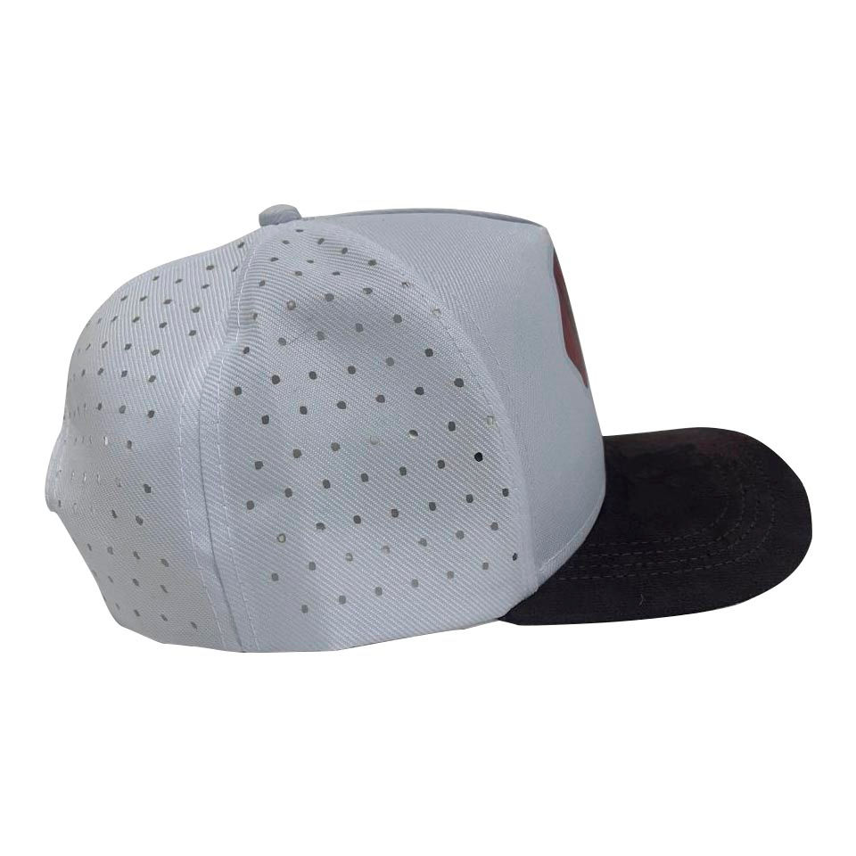 Boné branco, bordado com aba de camurça marrom e escrito em bordado